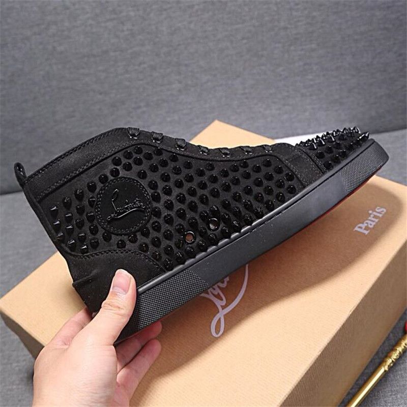 Clasico Negro C L Letra Zapatos De Suela Roja Zapatos De Gimnasio De Remache Para Hombre Zapatos Casuales De Color Puro Para Mujer Botas De Cuero Genuino De Alta Calidad De 133 56 Dhgate
